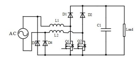 ![]() 隨著電力電子技術的發展,人們對功率變換器效率的要求也越來越高。無橋PFC電路也越來越多被采用。常規無橋boostPFC電路如圖2所示,在正半周期時,Q1作為高頻開關,Q2作為低頻開關。但是此電路的共模EMI性能較差,并沒有被廣泛采用。電路通過演變產生dualboost無橋PFC(圖3)和雙向開關型無橋PFC(圖4)。對于dualboostPFC電路,低頻續流回路為肖特基二極管D3和D4,對于雙向開關型無橋PFC,正半周期D1,D4導通,負半周期D2,D3導通,大大降低了共模EMI干擾。 由圖可見,常規無橋boostPFC和改進型的dualboostPFC驅動較為簡單,可以使用低邊驅動芯片如UCC27524。對于雙向開關型無橋PFC,驅動較為復雜,開關管Q1,Q2是共源極接法,因此可以使用TI隔離驅動芯片UCC5310/UCC5320同時驅動兩顆開關管,也可以使用兩路隔離驅動芯片UCC21520分別驅動兩顆開關管。