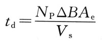 式中,td=所需的延時時間; Np=匝數; △B=磁通密度從Br到Bsat的變化,T; Br=在H=0時的剩余磁通密度; Bsat=飽和時的磁通密度,T; Ae=磁心有效面積,mm2; Vs=副邊電壓,V。 在本例中,在開始導通時加到磁心的次極電壓Vs可以由占空比與輸出電壓來計算公式如下: