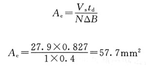 其中,這里有匝數和磁心面積兩個變量可用于電壓的較后調整。為了方便起見,這里假設采用原邊繞組匝數為1,即從變壓器來的輸出導線只是簡單地通過環形繞組。現在,這里就只剩下一個變量,即磁心面積。而所需要的磁心截面積可以由下式來計算: