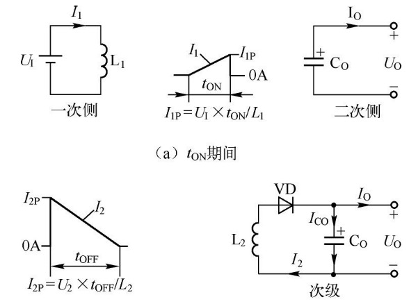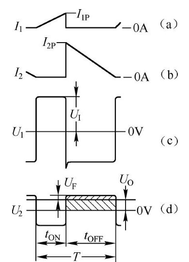 | 自激式電源適配器利用調(diào)整管、變壓器輔助繞組構(gòu)成正反饋通路,實(shí)現(xiàn)自激振蕩,再借助反饋信號(hào)穩(wěn)定電壓輸出。由于調(diào)整管兼作振蕩管,所以無(wú)須專設(shè)振蕩器,故所用的元器件較少,電路簡(jiǎn)單,成本低,在一定程度上簡(jiǎn)化了電路。由于自激式電源適配器經(jīng)濟(jì)實(shí)用,目前仍有較多的電子設(shè)備采用自激式電源適配器,如手機(jī)充電器、打印機(jī)、自動(dòng)化儀器儀表、電視機(jī)和顯示器等。 電源適配器廠家玖琪實(shí)業(yè)為大家講述變壓器耦合型自激式電源適配器基本電路的構(gòu)成、原理和特征波形,在此基礎(chǔ)上,以幾種電子設(shè)備的實(shí)例電路為載體,結(jié)合關(guān)鍵點(diǎn)的電壓或波形,一一解析它們的工作原理,希望引領(lǐng)讀者進(jìn)入電源適配器的萬(wàn)千世界。 自激式電源適配器的工作原理 現(xiàn)在所有由市電供電的AC-DC設(shè)備幾乎全部采用變壓器耦合型電源適配器,也稱為隔離型電源適配器(2)。功率管周期性通、斷,控制開(kāi)關(guān)變壓器一次繞組存儲(chǔ)輸入電源的能量,通過(guò)二次繞組進(jìn)行能量釋放。顯然,電源適配器的輸入與輸出是通過(guò)變壓器的磁耦合傳遞能量的。由于變壓器繞組之間是絕緣的,因此一、二次繞組完全隔離,即“熱地”和“冷地”是絕緣的,且絕緣電阻和抗電強(qiáng)度均可達(dá)到很高,這一特點(diǎn)對(duì)用電安全尤為重要。 1.自激式電源適配器的定義 開(kāi)關(guān)管的激勵(lì)脈沖是由變壓器輔助繞組與開(kāi)關(guān)管構(gòu)成的正反饋環(huán)路自激振蕩產(chǎn)生的,被稱為自激式電源適配器。由于自激式電源適配器的調(diào)整管兼作振蕩管,因此無(wú)須專設(shè)振蕩器。除非特別說(shuō)明,本書(shū)講述的自激式電源適配器均是指自激式變壓器耦合型電源適配器。下面就介紹這方面的知識(shí)。 2.自激式電源適配器的特點(diǎn) ①自激式電源適配器的結(jié)構(gòu)簡(jiǎn)單,生產(chǎn)制造成本低廉。 ②自激式電源適配器的脈沖信號(hào)是自激振蕩產(chǎn)生的,是一種非固定頻率的轉(zhuǎn)換電路,隨輸入電壓和負(fù)載的變化而變化,輕載時(shí)開(kāi)關(guān)頻率較高或間歇振蕩,滿載時(shí)頻率會(huì)自動(dòng)降低。 ③自激式電源適配器在占空比D發(fā)生改變時(shí),開(kāi)關(guān)管的IC與UCE相對(duì)值發(fā)生變化,因此D變化范圍較小,一般小于50%。 ④自激式電源適配器具備一定的自保護(hù)功能,一旦負(fù)載過(guò)重,必然破壞反饋條件,振蕩將因損耗過(guò)大而減少或間歇振蕩,因此保護(hù)電路比較簡(jiǎn)單,這是自激式電源適配器的一大優(yōu)點(diǎn)。 ⑤自激式電源適配器的電流峰值高、紋波電流大,由于工作頻率隨輸入電壓和負(fù)載電流的變化而變化,在高功率、大電流工作時(shí)穩(wěn)定性差,故僅適宜60W以下的小功率場(chǎng)合。由于許多辦公設(shè)備、手機(jī)充電器和儀器儀表等都在這個(gè)功率范圍之下,故自激式電源適配器的使用相當(dāng)普遍。 自激式電源適配器的工作原理 圖為自激式電源適配器的基本電路。UI是輸入交流電壓經(jīng)整流的直流電壓;CI是整流電壓的濾波電容;是功率開(kāi)關(guān)管VT的啟動(dòng)電阻;RB、CB與變壓器輔助繞組構(gòu)成VT的振蕩電路;T是開(kāi)關(guān)變壓器,一次繞組用于儲(chǔ)能及一、二次繞組之間的能量耦合,輔助繞組產(chǎn)生正反饋信號(hào);整流二極管VD和電解電容CO組成整流濾波電路,輸出平滑的直流電壓UO給負(fù)載RL供電。 ![]() 初始上電時(shí),電阻給VT提供啟動(dòng)電流開(kāi)始導(dǎo)通。VT一旦導(dǎo)通,變壓器T一次繞組因有電流流過(guò)而發(fā)生自感,自感電動(dòng)勢(shì)(或自感電壓)U1的方向?yàn)椤吧险仑?fù)”,阻止電流的增大;另一方面,一次繞組與二次繞組、輔助繞組發(fā)生互感。根據(jù)變壓器T同名端符號(hào)(圓黑點(diǎn))可知,二次繞組感應(yīng)動(dòng)勢(shì)U2的方向?yàn)椤吧县?fù)下正”,二極管VD反偏截止;輔助繞組感應(yīng)動(dòng)勢(shì)UA的方向也為“上正下負(fù)”,加速VT導(dǎo)通。 當(dāng)VT趨向于截止時(shí),一次繞組因電流減小而發(fā)生自感,同時(shí),一次繞組與二次繞組、輔助繞組發(fā)生互感。所有繞組的電壓極性反轉(zhuǎn),一次繞組自感電動(dòng)勢(shì)的方向阻止電流的減小(此時(shí)一次繞組自感電動(dòng)勢(shì)U1與電源電壓UI順向疊加),二次繞組感應(yīng)電動(dòng)勢(shì)的方向使二極管VD正偏,輔助繞組感應(yīng)電動(dòng)勢(shì)UA的方向加速VT截止。 關(guān)鍵節(jié)點(diǎn)電壓和支路電流波形如圖3-2所示。在VT導(dǎo)通(tON)期間,變壓器T一次繞組從電源電壓UI蓄積能量;在VT截止(tOFF)期間,變壓器T蓄積的能量釋放給負(fù)載。在VT從導(dǎo)通到截止轉(zhuǎn)換瞬間,變壓器一、二次繞組依次出現(xiàn)峰值電流I1P、I2P(3)(見(jiàn)圖(a)、(b))。一、二次繞組均為脈沖電壓,且相位相反(見(jiàn)圖(c)、(d))。UF為整流二極管導(dǎo)通壓降,U2的正脈沖等于輸出直流UO與UF的疊加。 ![]() tOFF結(jié)束時(shí),變壓器一次繞組感應(yīng)電動(dòng)勢(shì)自由振蕩返回到零。VT基極連接的輔助繞組也稱正反饋繞組,因變壓器互感產(chǎn)生正反饋信號(hào)控制功率管VT通、斷,即所謂自