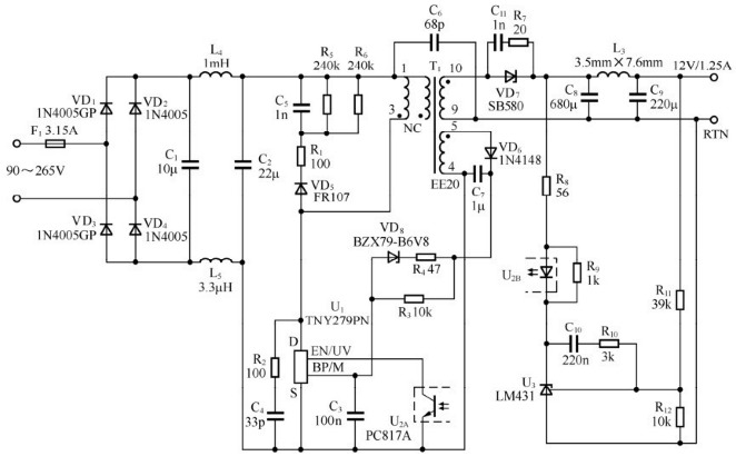 15W、12V電源適配器應用電路 | |||||