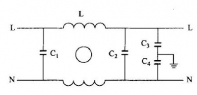 圖1 電源線濾波器基本電路圖