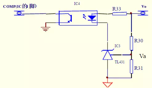 輸出過壓時,Va>Vref,IC3導通,通過IC4向原邊反饋,輸出電壓穩定在設定的過壓保護值。