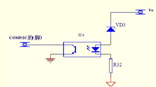 輸出過壓時,加在VD3上的電壓大于其穩壓值時,VD3導通,輸出電壓被鉗位,同時通過IC4向原邊反饋。