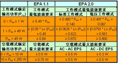 表1美國環(huán)保署“能源之星”外部電源的1.1及2.0版規(guī)范。