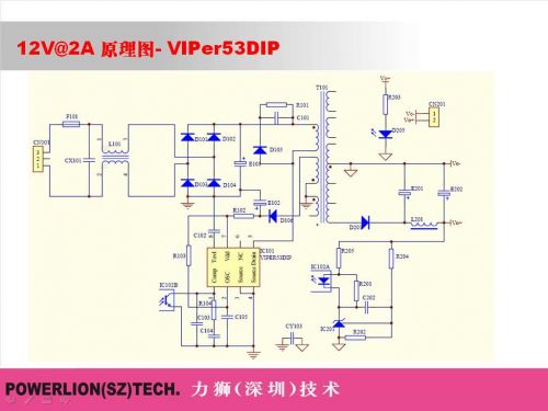 3. 確定所選擇的芯片以后,開始做原理圖(sch),在這里我選用 ST VIPer53DIP(集成了MOS) 進行設計,原因為何(因為我們是銷售這一顆芯片的)?
