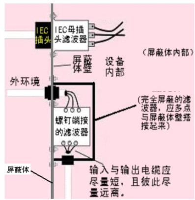 I 為電流, l 為線纜長度, 測試點 r 為距離天線的距離 上式的適用條件是忽略了天線上的電流分布, 適用于1/4 ,把導線當短線處理的情況。 這個公式可用來估算 RE 電源線和信號線的輻射強度。因為一般線纜輻射為寬帶輻射, 頻段一般在200MHz,尤其對電源線而言, 輻射主要集中在幾十 MHz 左右。 以 50MHz 為例, 對應波長為 6m,一般的電源線長度均在 2m 以內,基本上可以當作短線處理。 用電流探頭卡在設備的電源線或者信號線束上, 測出線束上的電流, 取平均值帶入上式, 即可估算出遠場區的場強分布。 由于電源問題導致的 RE 測試超標的問題很多, 總結歸納一下,由于電源問題導致 RE 超標的具體形式有: 1. 濾波器的安裝問題。 濾波器在安裝一定要確保濾波器殼體良好接地。 因為我們所要慮掉的干擾主要是縱向干擾,也就是對地地干擾。 如果濾波器不能良好接地,就不能對縱向模干擾進行濾波。其次, 濾波器的安裝位置。 濾波器作為一種抑制傳導干擾的器件, 還應該和機殼(屏蔽體)配合使用。干擾信號的輸入端一定要在屏蔽體內部,在可能的條件下, 輸出端應接到屏蔽體的外部。這樣來自機殼內部的干擾既不會通過電源線傳導出去,又不能通過空間輻射出去。