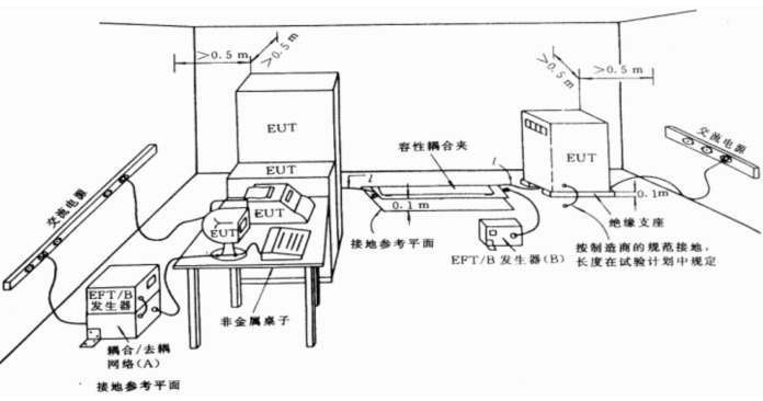 電快速瞬變脈沖群測試及相關要求 不同的電子、 電氣產品標準對電快速瞬變脈沖群抗擾度試驗的要求是不同的,但這些標準關于電快速瞬變脈沖群抗擾度試驗大多都直接或間接引用 GB/T17626.4-1998(idt IEC 61000-4-4:1995):《電磁兼容試驗和測量技術 電快速瞬變脈沖群抗擾度試驗》這一國家電磁兼容基礎標準,并按其中的試驗方法進行試驗。下面就簡要介紹一下該標準的內容、試驗方法及相關要求。