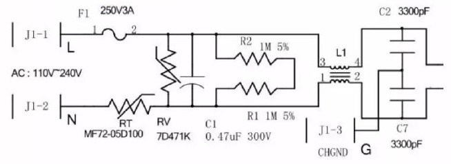 EMI電路 X電容,共模電感(也叫共模扼流圈) , Y電容