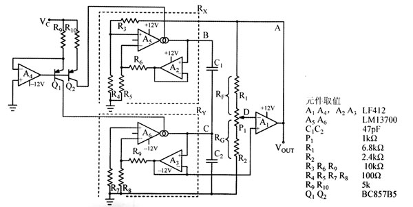 圖所示的為新型VCO電路?圖4?5?1電源適配器供應商(東莞玖琪)氏橋電路頻率控制環的電阻(RRy)被運算跨導放大器(OTA)A1A代替,構成VCR結構?