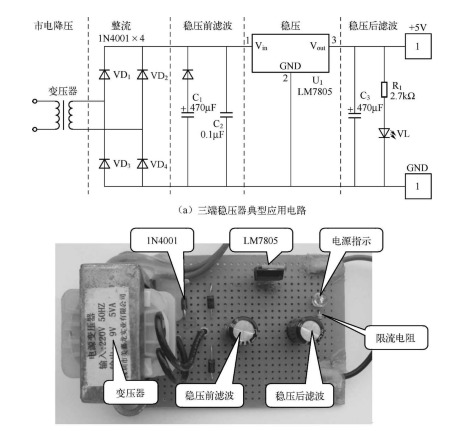 線性電源適配器通常都是由電網(wǎng)所提供的交流電,經(jīng)過(guò)變壓、整流、濾波和穩(wěn)壓環(huán)節(jié)而得到。其各個(gè)部分電路的作用如下: ①電源適配器變壓器——將220V電網(wǎng)電壓轉(zhuǎn)換為整流電路所需要的交流電壓值,而少部分電路采用電容降壓,如遙控電風(fēng)扇電路。 ②整流電路——將交流電壓轉(zhuǎn)換為脈動(dòng)直流電壓。常用的整流電路有半波整流電路、全波整流電路和橋式整流電路。 ③濾波電路——將脈動(dòng)直流電壓轉(zhuǎn)換成較為平滑的直流電壓。線性電源適配器中常用的濾波電路有電感濾波、電容濾波和阻容濾波,其中較常用的是電容濾波。 ④穩(wěn)壓電路——將直流電源適配器的輸出電壓穩(wěn)定,基本不受電網(wǎng)電壓或負(fù)載的影響。在線性電源適配器中常用的穩(wěn)壓電路有二極管穩(wěn)壓、串聯(lián)穩(wěn)壓。其中,串聯(lián)穩(wěn)壓有現(xiàn)成的集成電路,如固定電壓輸出的集成電路有LM78××,LM79××等,可調(diào)電壓輸出的集成電路有LM317和LM337等。 圖為包含市電降壓、整流、濾波和穩(wěn)壓4個(gè)功能模塊的線性穩(wěn)壓電源適配器。 ![]() 4個(gè)功能模塊的線性穩(wěn)壓電源適配器 線性電源適配器的優(yōu)點(diǎn)是穩(wěn)定性好、瞬態(tài)響應(yīng)速度快、可靠性高、輸出電壓精度高和輸出紋波電壓小;缺點(diǎn)是工作頻率低,所采用的工頻變壓器、濾波器的體積和重量都較大。調(diào)整管工作在線性狀態(tài),功耗大、效率低,需要加裝散熱器。在一般情況下,線性電源適配器效率均不會(huì)超過(guò)50%,但它優(yōu)良的輸出特性,在