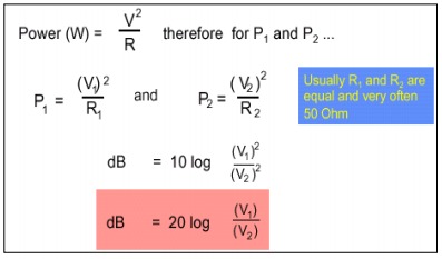 通過以下的推導可知電壓由分貝表示為(注意有一個前提條件為R1=R2):
