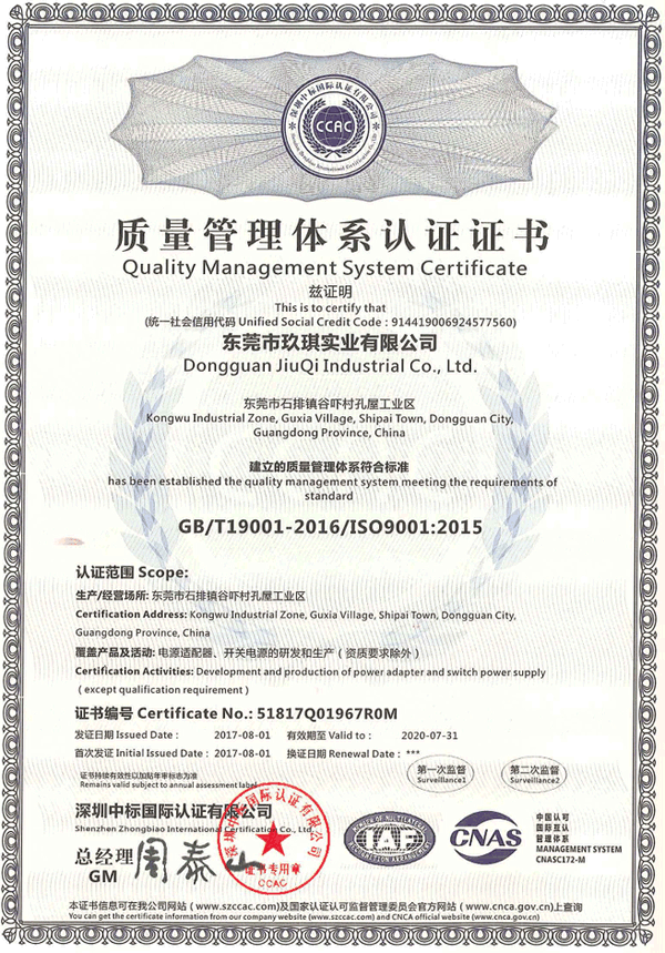 質(zhì)量管理體系認證證書ISO9001:2015