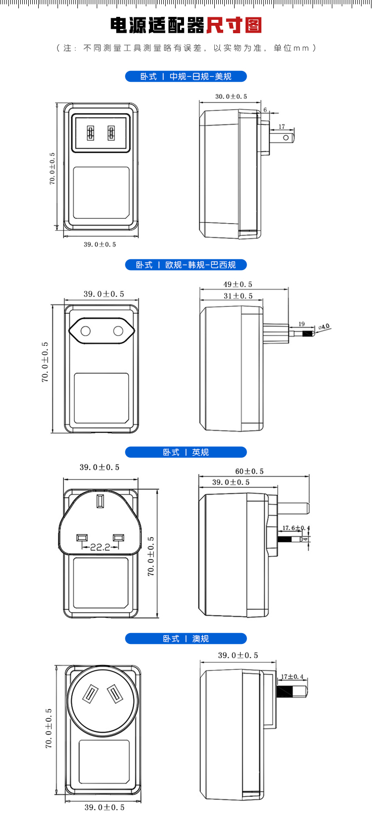 OEM訂做,每一個(gè)品字尾電源適配器是有AC線和DC線的。可根據(jù)客戶(hù)需求定做,提供OEM加工。